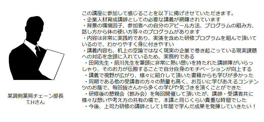(3)講師・人事担当者・管理職に必要な人材育成のノウハウを身に着けることが出来る。
